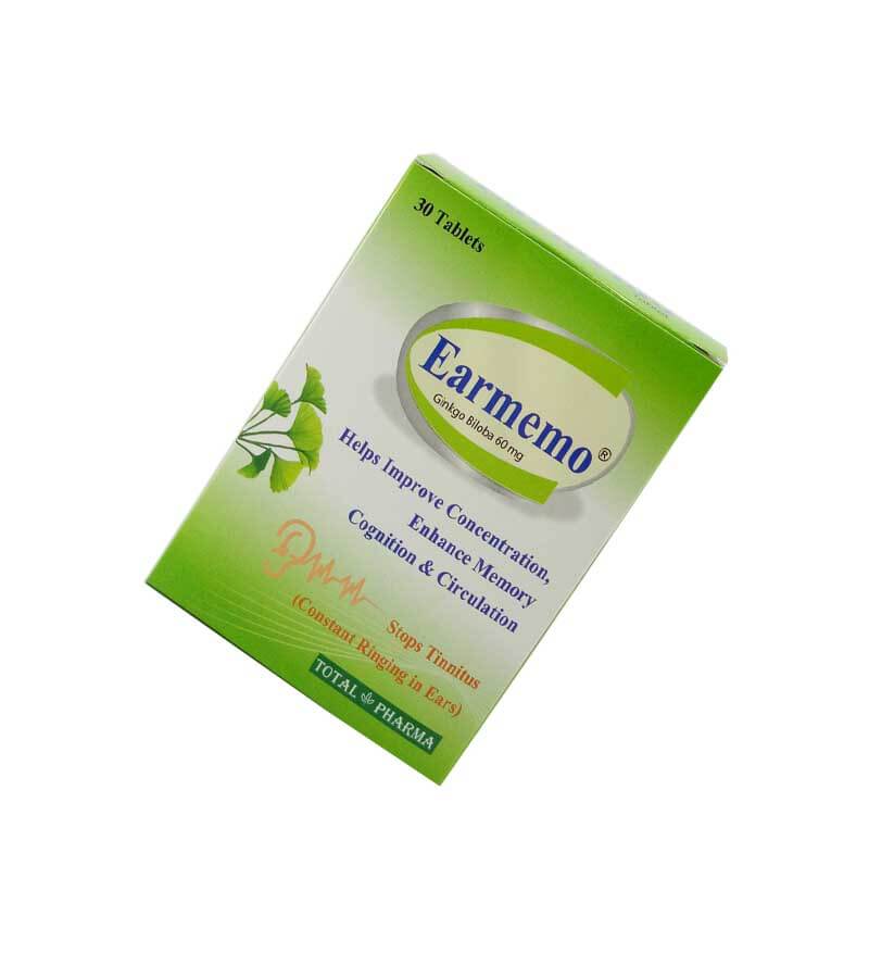 EARMEMO 60 MG is a dietary supplement containing 60 mg of Ginkgo Biloba extract per tablet. Ginkgo Biloba is an herbal remedy traditionally used to support cognitive function and enhance blood circulation.
