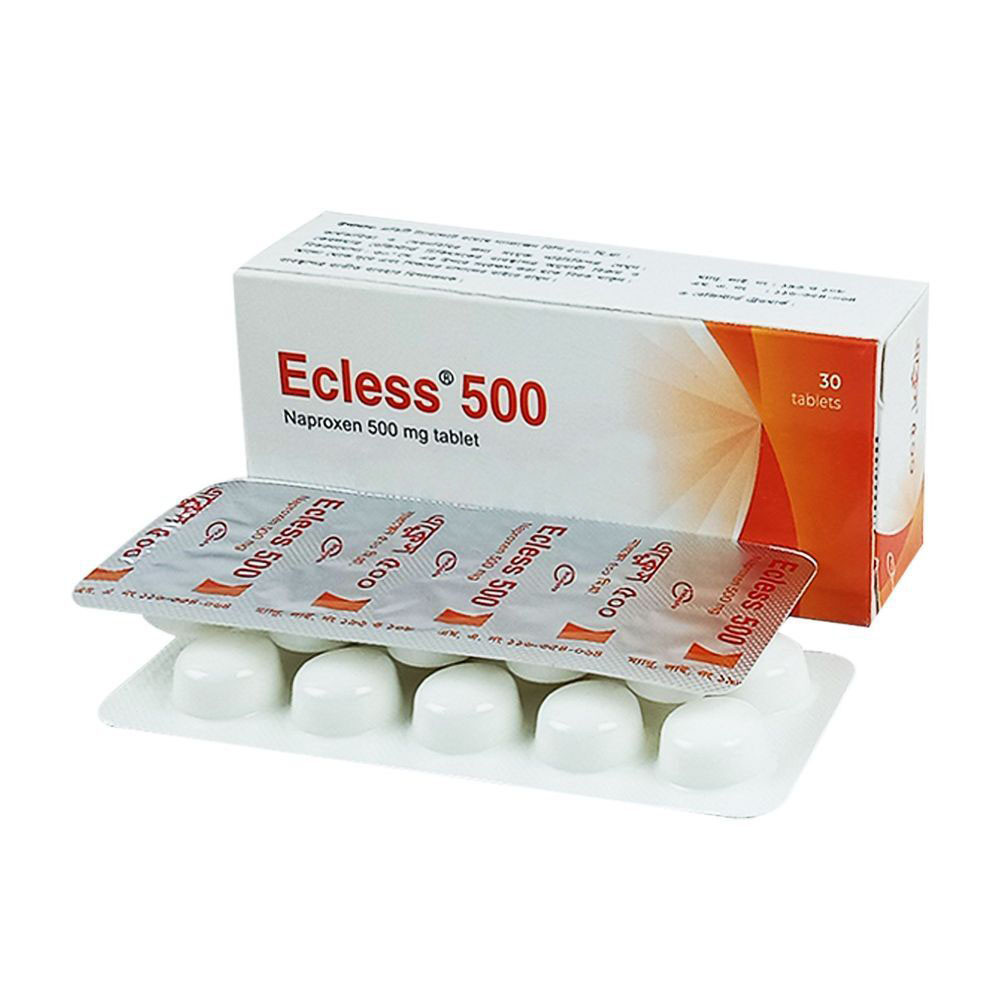 Ecless 500 mg Tablet is a medication manufactured by Incepta Pharmaceuticals Ltd. in Bangladesh. It contains Naproxen Sodium, a non-steroidal anti-inflammatory drug (NSAID) known for its analgesic and anti-inflammatory properties.