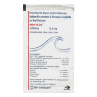 MOVICOL contains macrogol (polyethylene glycol), electrolytes like sodium chloride, sodium bicarbonate, and potassium chloride. It works by retaining water in the stool through osmosis, softening the stool and increasing bowel movement frequency.