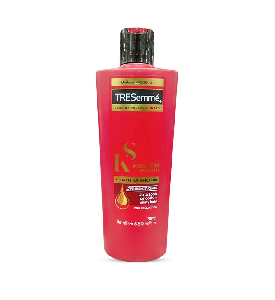 TRESemmé Keratin Smooth Shampoo is infused with keratin and argan oil to provide up to 100% smoother, shinier hair. Its low sulfate formula gently cleanses while controlling frizz for a salon-quality finish. Perfect for all hair types, this shampoo helps achieve manageable, sleek, and nourished hair with long-lasting smoothness.